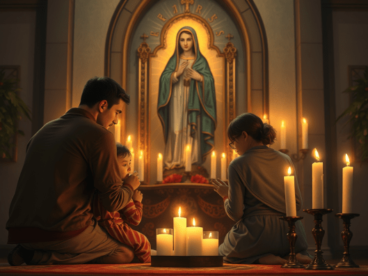 Não há nada mais belo e forte no mundo do que uma família que se reúne em frente a uma imagem de Nossa Senhora para rezar por uma graça em comum. E que essa graça seja para que sua família esteja forte diante das adversidades. Que sua família seja um estandarte de Cristo neste mundo. Que pais e filhos saibam que Cristo é o nosso Deus e Senhor.