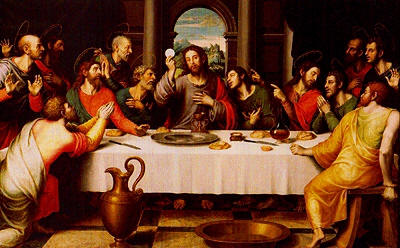 Depois de reunir os Apóstolos no Cenáculo, Jesus tomou nas suas mãos o pão, partiu-o e deu-lho dizendo: «Tomai e comei todos: isto é o meu corpo entregue por vós». Depois tomou nas suas mãos o cálice do vinho e disse-lhes: «tomai e bebei todos: este é o cálice do meu sangue para a nova e eterna aliança, derramado por vós e por todos para a remissão dos pecados. Fazei isto em memória de mim».